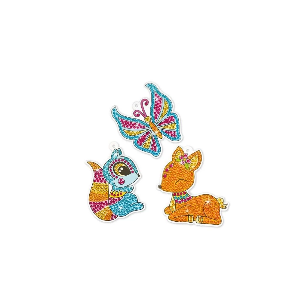 Mit dem Glitzer-Fensterbilder Set können ganz einfach wunderschöne Fensterbild erstellt werden. Die süßen Motive, das Eichhörnchen, das Reh oder der Schmetterling sind bunt und vorbedruckt, zeigen an wo die Glitzersteine hingehören, und sind selbstklebend. Es muss nur die Folie abgezogen werden und schon kann der Strasssteine-Spaß starten.