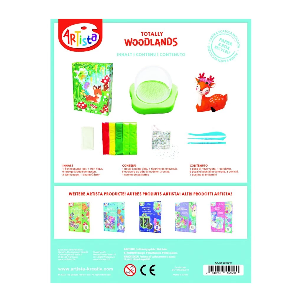 Magischer Bastelspass mit dem Totally Woodlands Set. Kinder ab 6 Jahren modellieren aus 6 verschiedenfarbigen Tonsorten die Landschaft rund um das Reh mit Hilfe der 3 Werkzeuge. Nach etwas Geschick fehlen nur noch Wasser, Glitzerstaub und schon ist das Reh in einer zauberhaften Glitzer-Schneekugel.