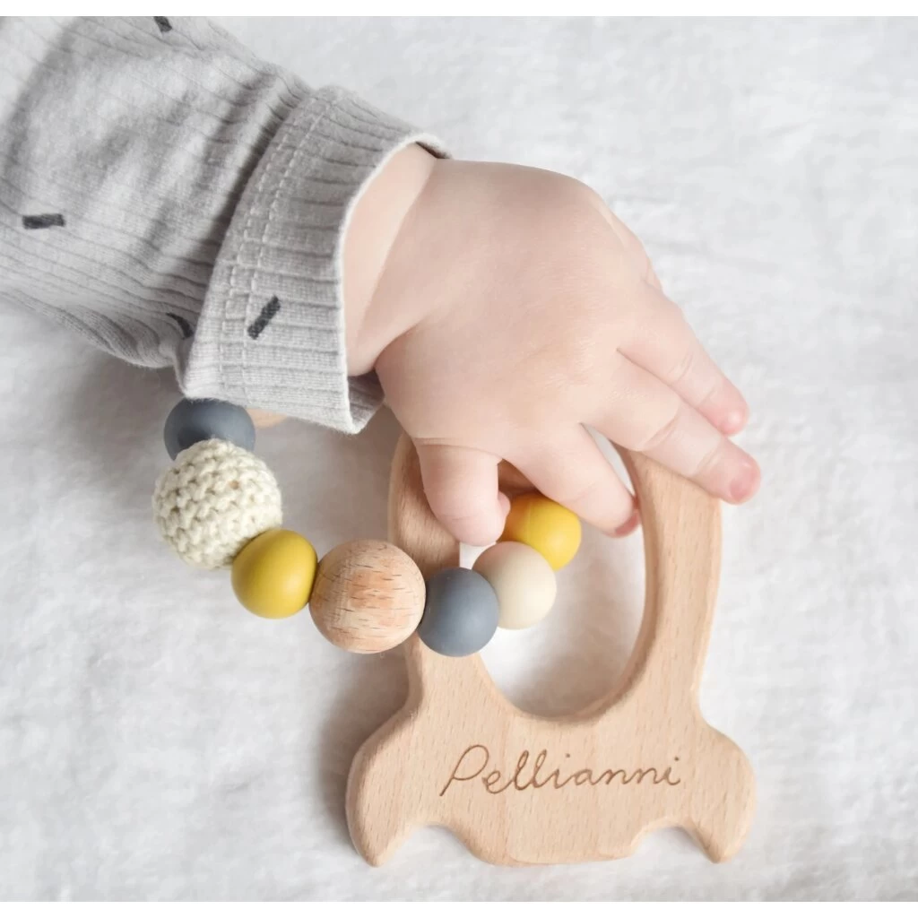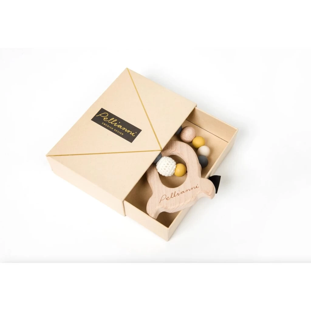 Das Design dieses süßen Zahn- und Greifspielzeugs von Pellianni basiert auf verschiedenen Texturen und Formen, um das Erfahren und Entdecken des Babies zu intensivieren. Der Teether wird hergestellt aus 100% Bio-Buche und Bio-Ahorn – Alles natürlich und unbehandelt kombiniert mit lebensmittelechtem Silikon.