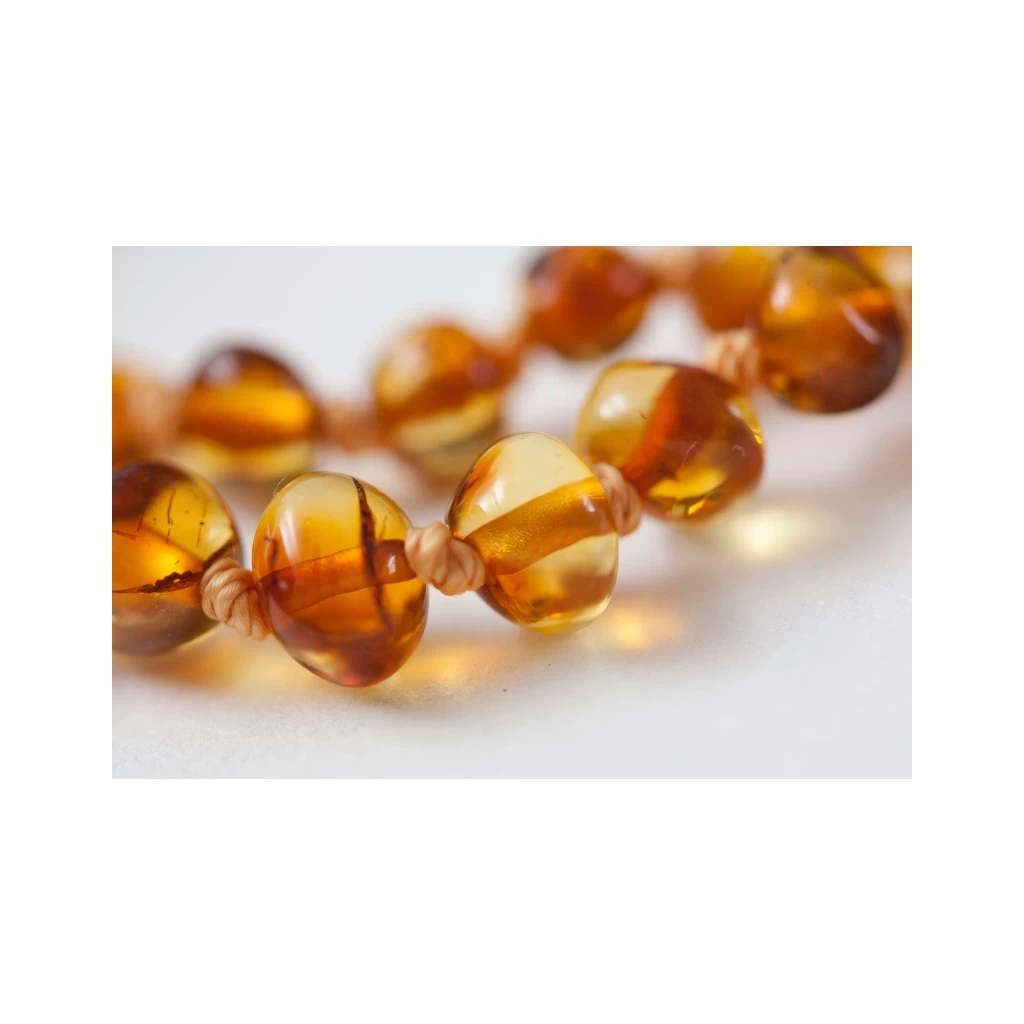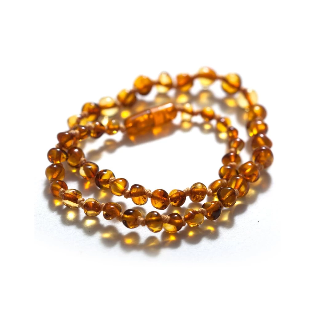 - Die Baby-Bernsteinketten werden dem Kind um den Hals gelegt und mit dem allergenfreien Sicherheitsverschluss verschlossen.