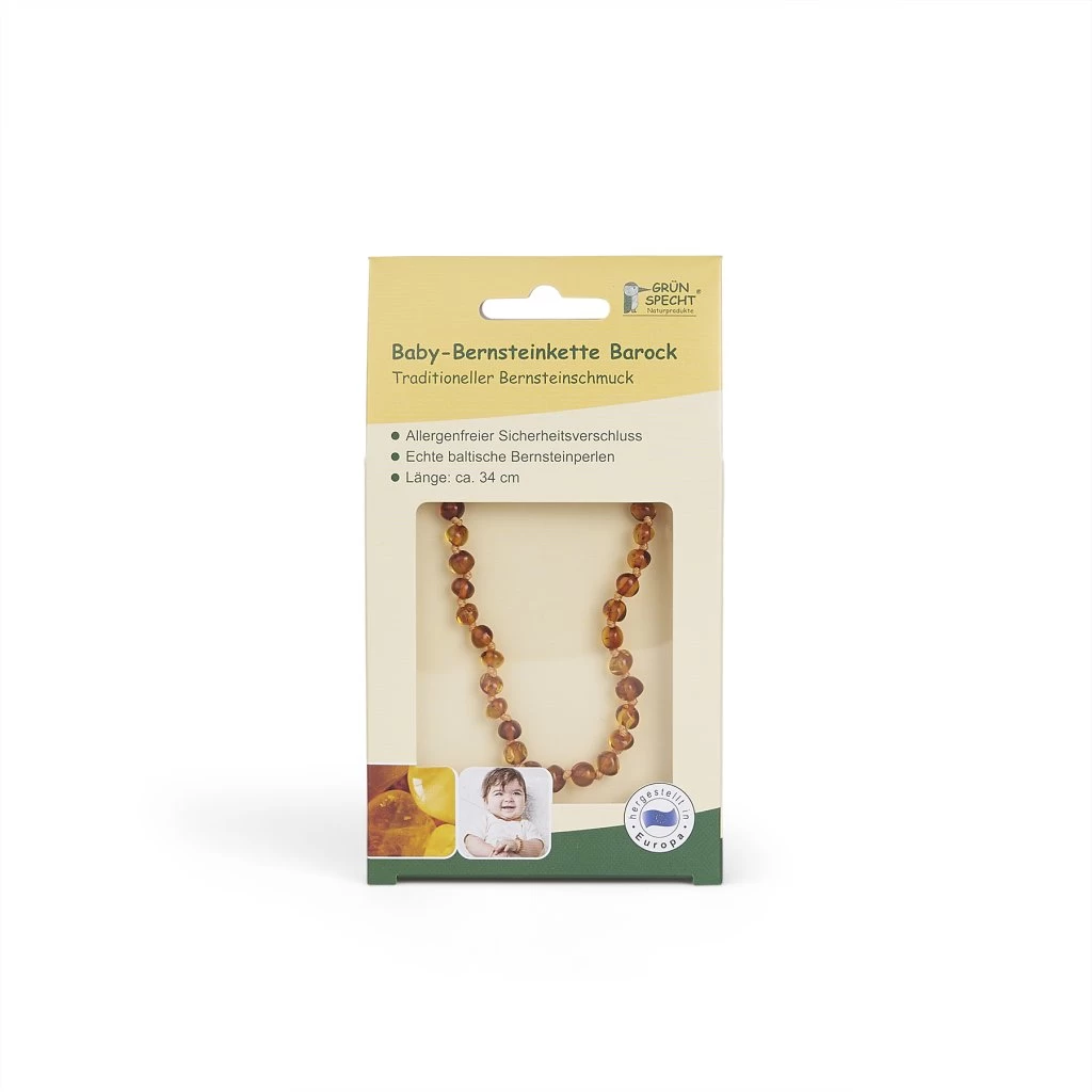 Traditioneller Babyschmuck mit Sicherheitsverschluss in drei Bernsteinformen