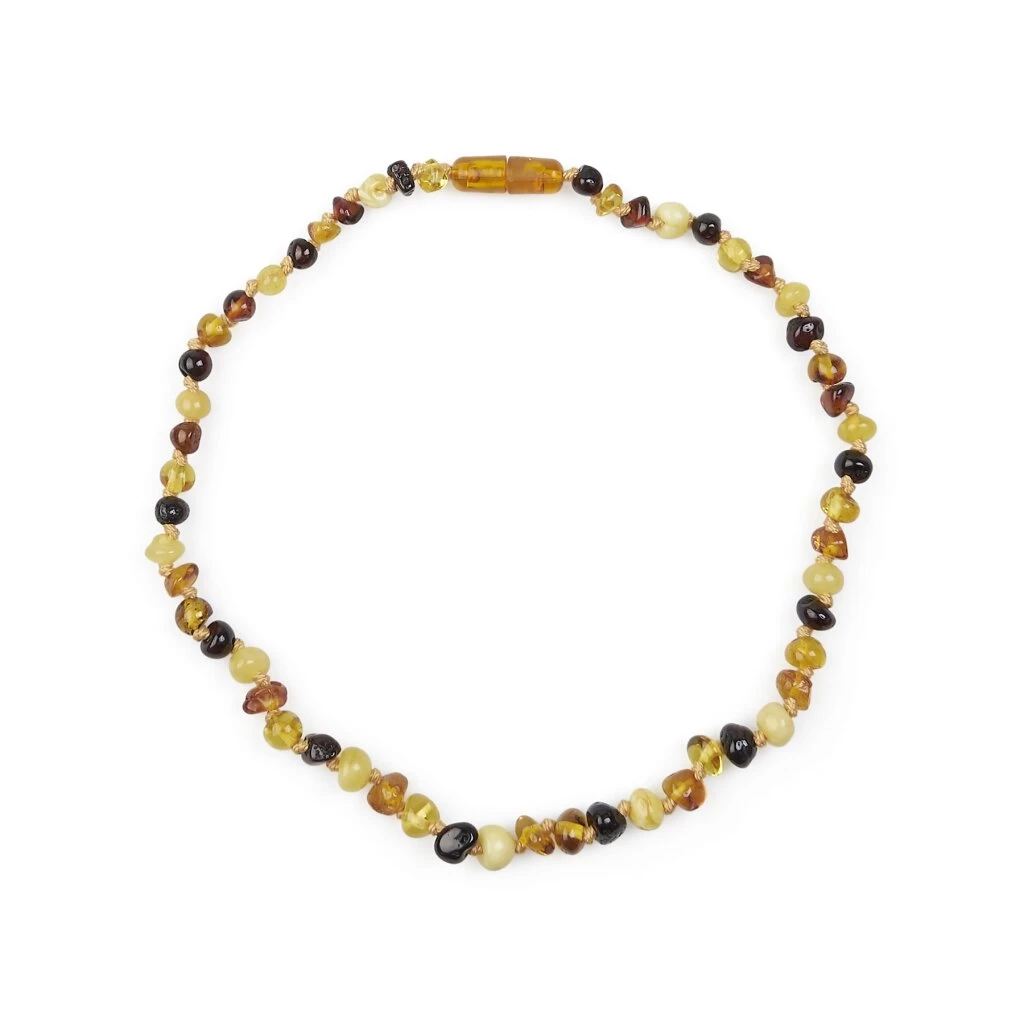 - Die Baby-Bernsteinketten werden dem Kind um den Hals gelegt und mit dem allergenfreien Sicherheitsverschluss verschlossen.