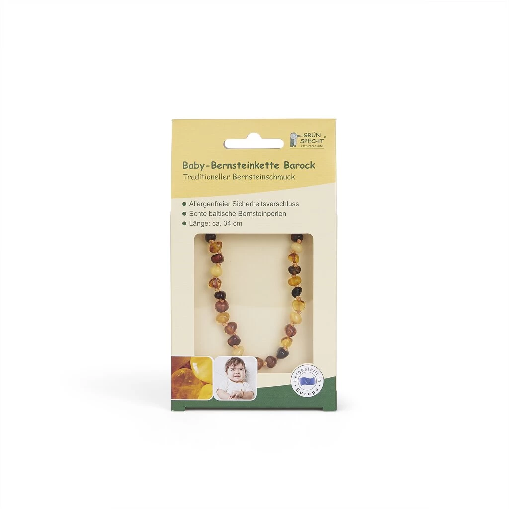 Traditioneller Babyschmuck mit Sicherheitsverschluss in drei Bernsteinformen