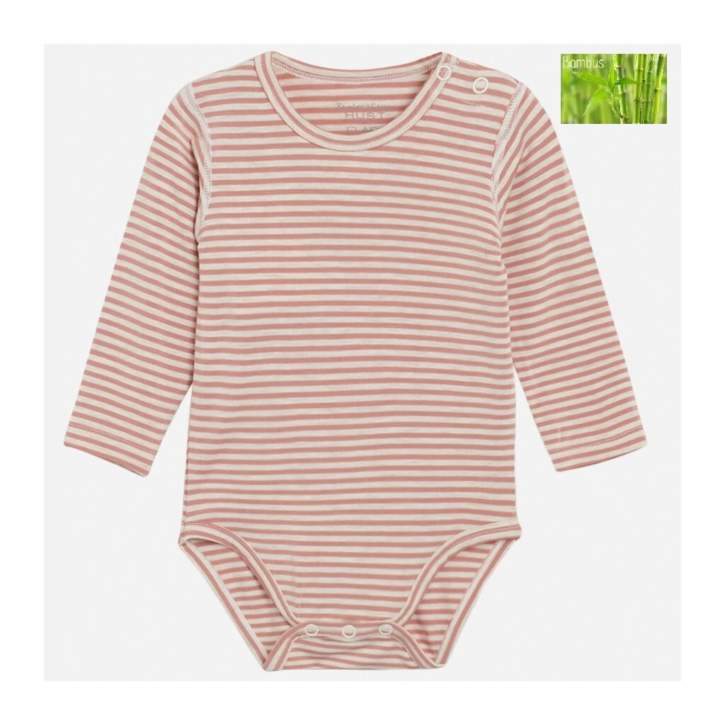 Buller – Bodysuit in der Farbe Ash rose von Hust and Claire Material: 95% Viscose from Bamboo 5% Elastane Gestreifter Langarmbody aus weicher, dehnbarer Bambusviskose. Verfügt über einen Knopfverschluss auf der linken Schulter und zwischen den Beinen. Dieses Produkt ist Oeko-Tex 100® zertifiziert.