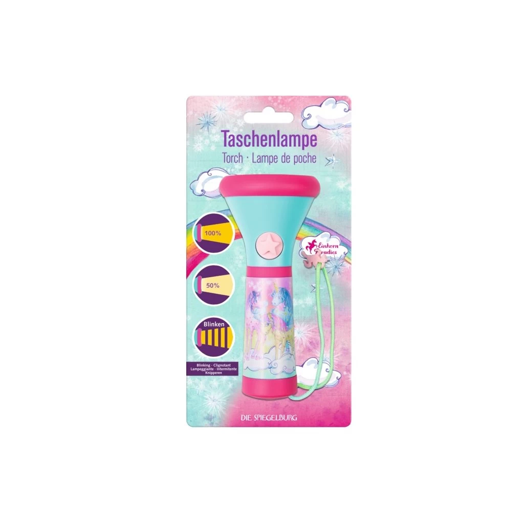 Kindgerechte Form. Eine LED mit 3 Leuchtmodi: volle Leuchtkraft, 50% Leuchtkraft, Blinken. Gummierte Oberflächen für erhöhte Rutschfestigkeit. Mit praktischer Halteschlaufe und Dekoanhänger. Batterien (3 x AAA) nicht enthalten.