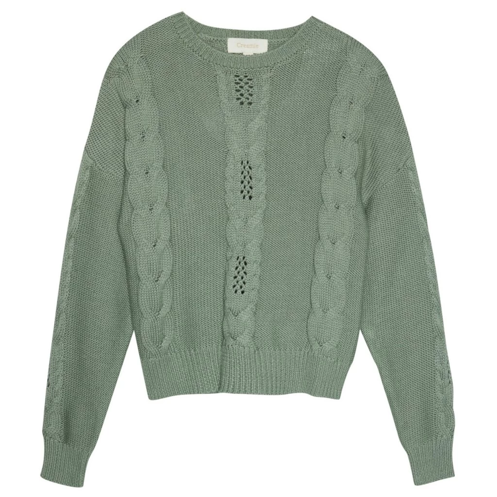 Creamie Mädchen-Strickpulli Zopfmuster grün