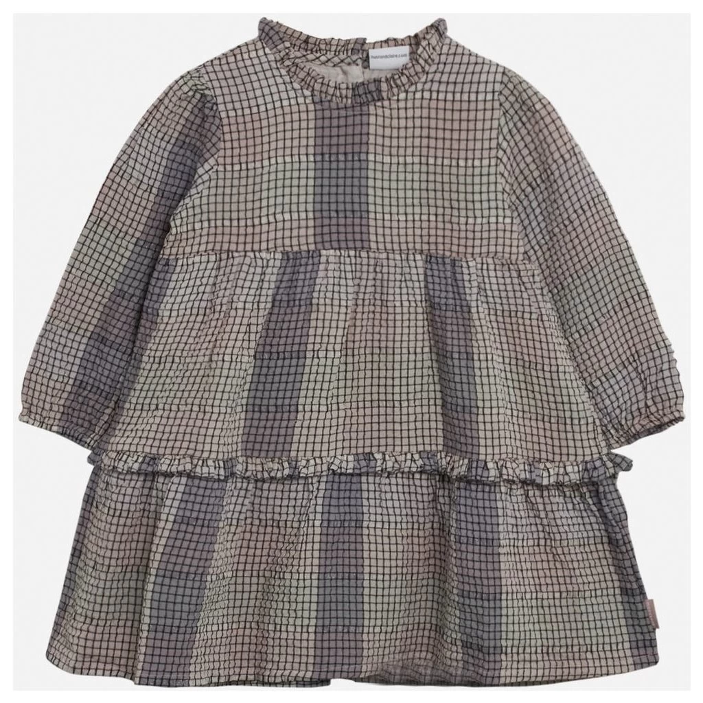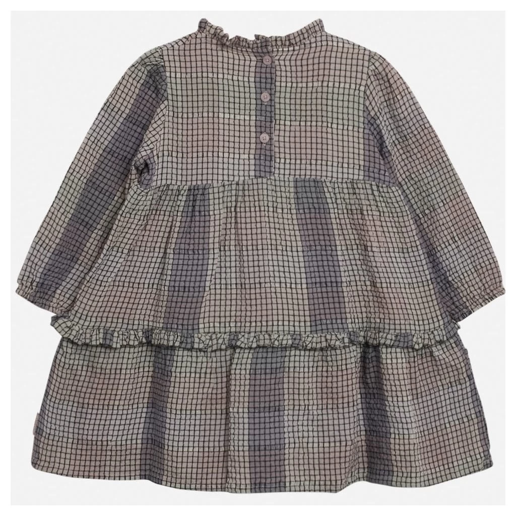 Didana – Dress in der Farbe Lilac snow und der Größe 110 von Hust and Claire Material: 90% Viscose 9% PL 1%EA Kariertes Langarmkleid aus leichter, gewebter Viskose mit Rüschenkragen und mit elastischen Ärmelabschlüssen. Dieses Modell ist an den Schultern leicht gerafft und verfügt über Partien mit Raffungen und Rüschen, die unten für eine weite Passform sorgen. Mit einem Knopfverschluss im Nacken.
