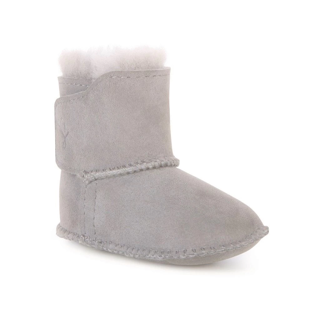 ooooh wie süß sind diese Baby Booties denn bitte?! Kleine Baby- Füße lieben die süßen Stiefel von EMU Australia. Mit dem weichen, doppelseitigem austalischem Lammfell hat Ihr kleiner Schatz immer warme Füßchen.. Die weiche Sohle ermöglicht es, dem wachsenden Babyfuß sich problemlos in alle Richtungen zu bewegen. Der praktische Klettverschluss an der Seite ermöglicht ein müheloses An- und Ausziehen des Booties. Lammfell ist atmungsaktiv – und hält die kleinen Füße im Winter kuschelig warm und im Sommer angenehm kühl.