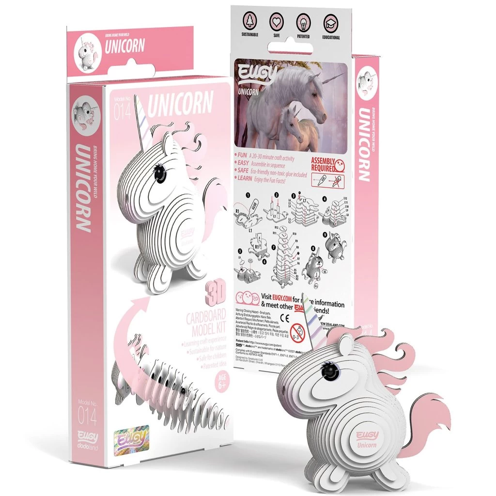 Eugy sind einzigartige und nachhaltige 3D-Miniatur-Tierfiguren aus umweltfreundlichen und biologisch abbaubarem Wellkarton. Jedes Set enthält alles, was für den Zusammenbau einer 3D-Tierfigur benötigt wird. Der Zusammenbau ist denkbar einfach, indem die nummerierten Kartonschichten nach und nach zu einer Figur zusammengesteckt werden. Eine Figur ist in ca. 20 Minuten zusammengebaut. Beim Design wird viel Wert auf die Details der einzelnen Tiere gelegt. Eugy vereint umweltbewusstes Basteln mit tollem Sammelspass.