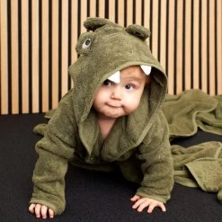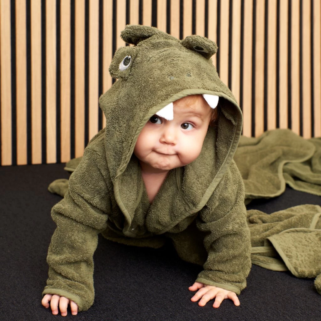 Dieser super süße Bademantel mit den goldigen Krokodil-Augen und Zähnen ist super praktisch nach dem Baden, Duschen oder im Schwimmbad. Das Frottee nimmt das Wasser auf und Ihr kleiner Schatz ist schnell wieder trocken.