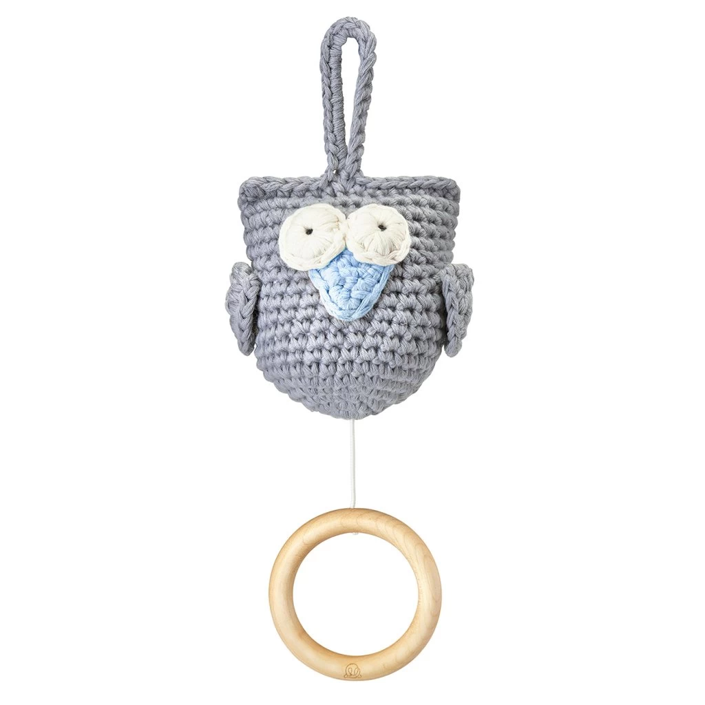 Super süße, von Hand gehäkelte Spieluhr – Eule Grau von Maylily. Die süße Eule bringt Ihren kleinen Schatz in den Schlaf.