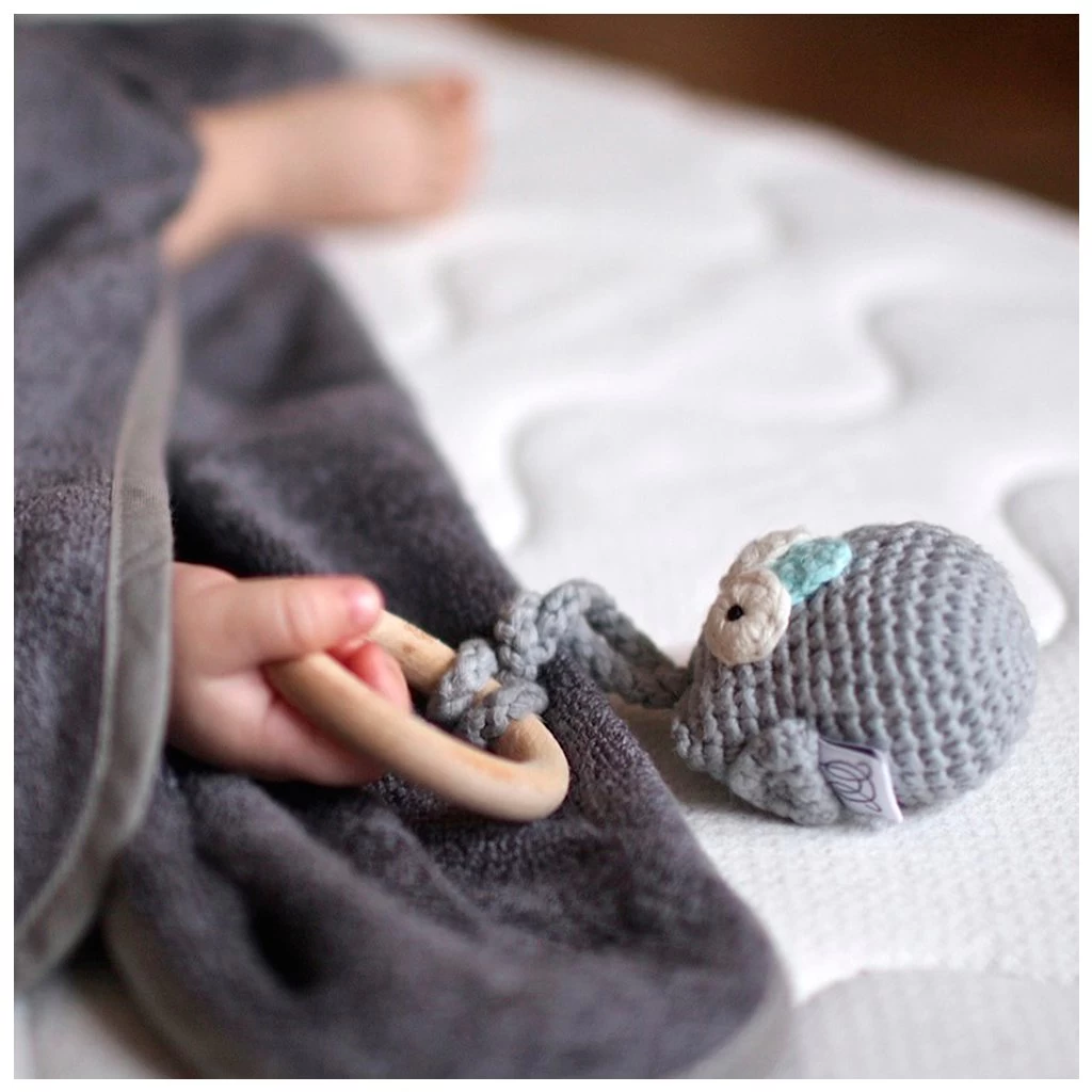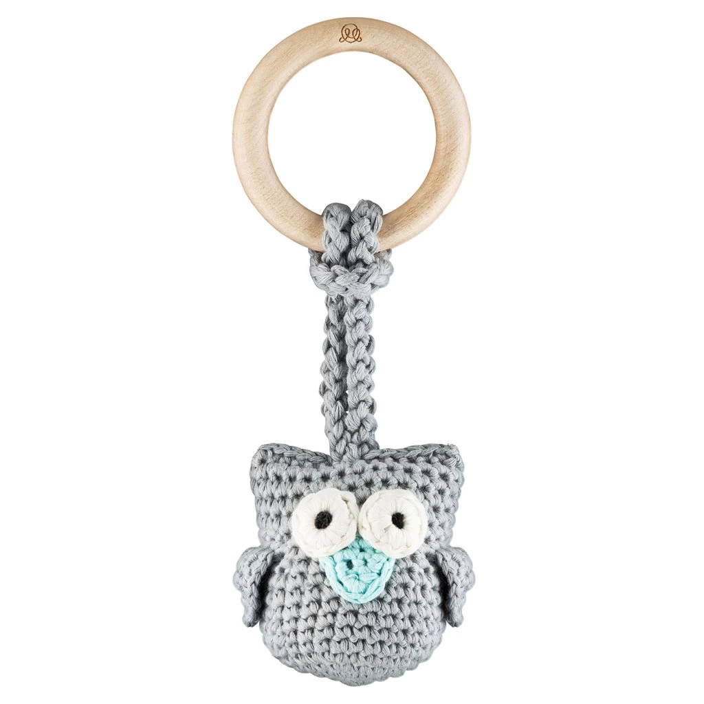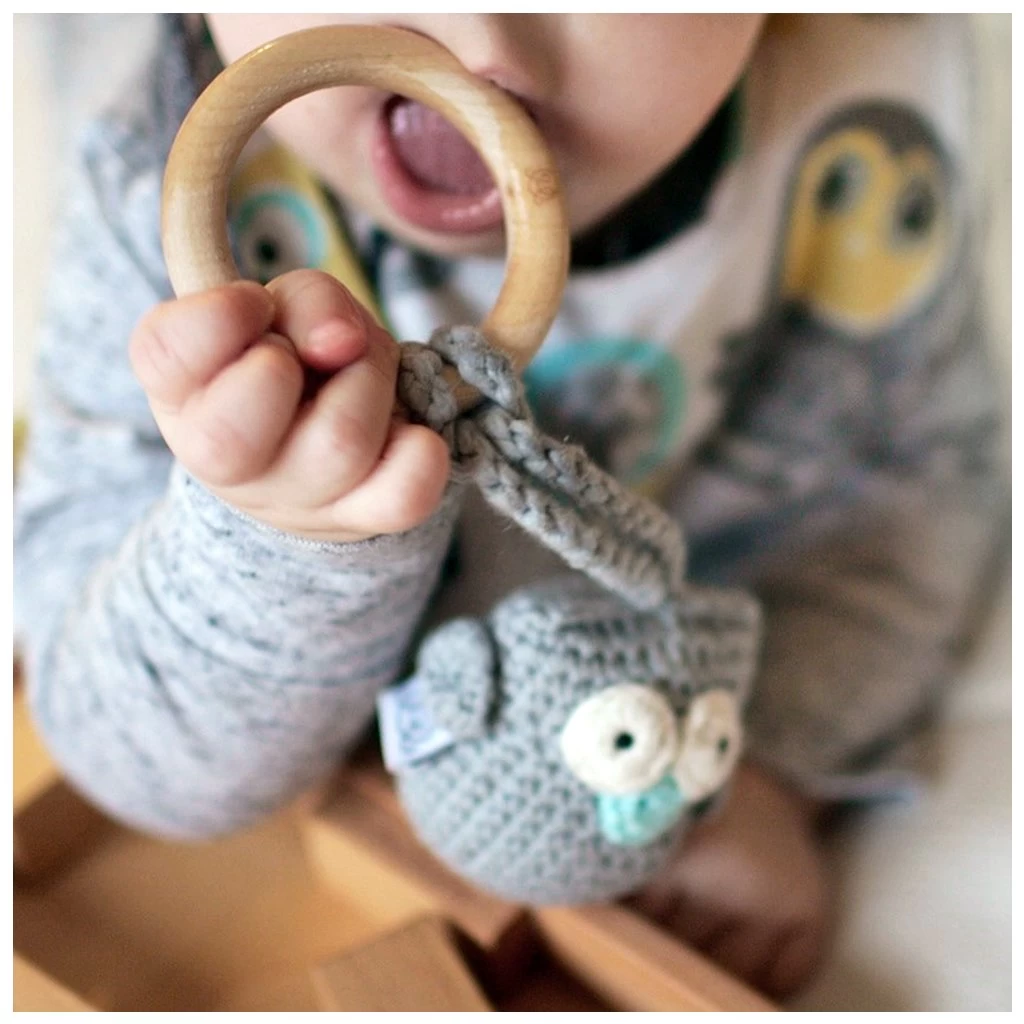 Dieser wunderschöne von Hand gehäkelte Beißring Eule in der Farbe Grau von der Firma Maylily ist der absolute Hingucker. Der Ahornholzring hilft Deinem kleinen Schatz beim Zahnen, er wurde mit Bio- Kokosöl imprägniert.