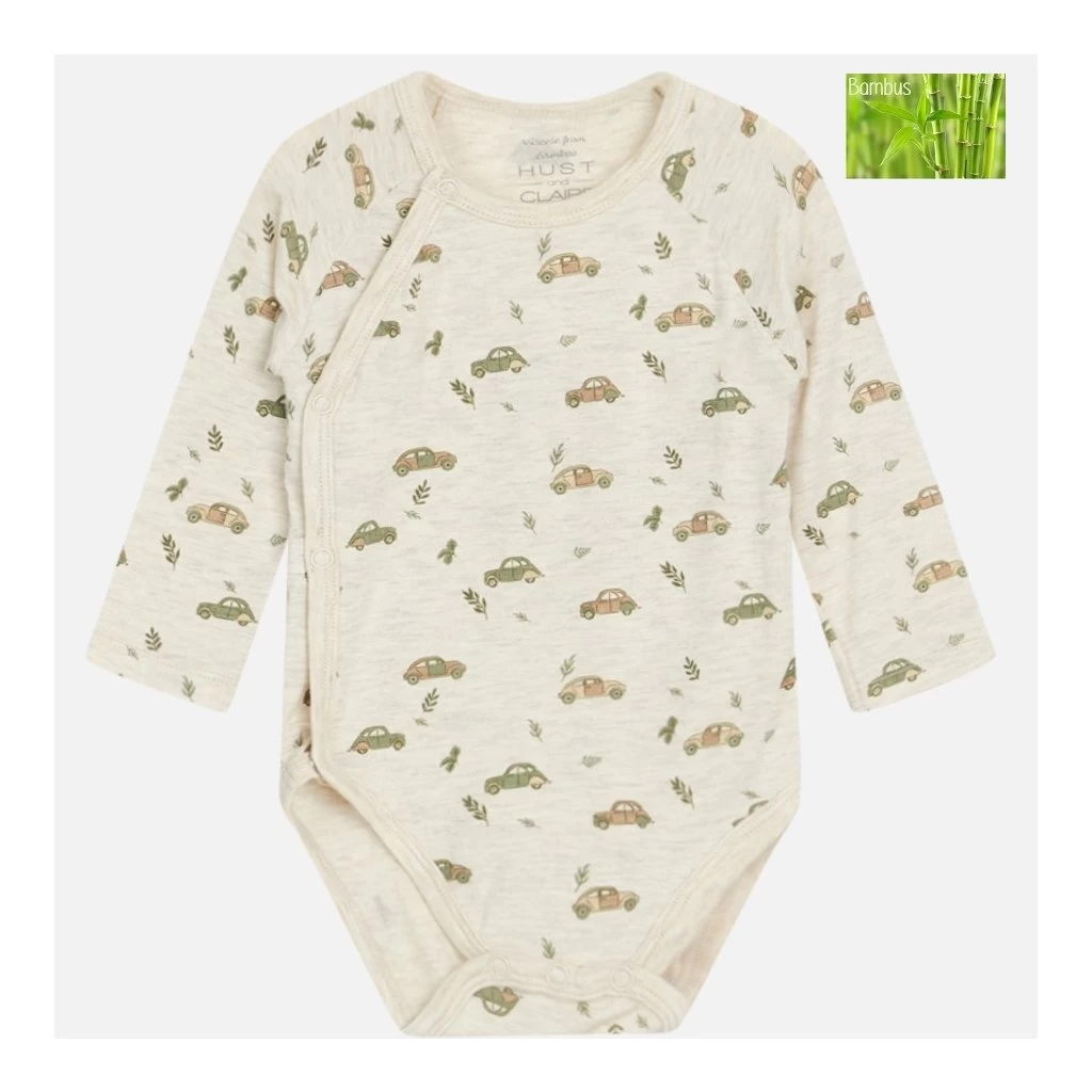 Langärmliger Overall aus weicher und elastischer Bambusviskose mit Blumen- oder Autodruck zur Auswahl. Verfügt über einen Rundumverschluss auf der rechten Seite sowie einen Verschluss zwischen den Beinen. Dieses Produkt ist Oeko-Tex 100®-zertifiziert.