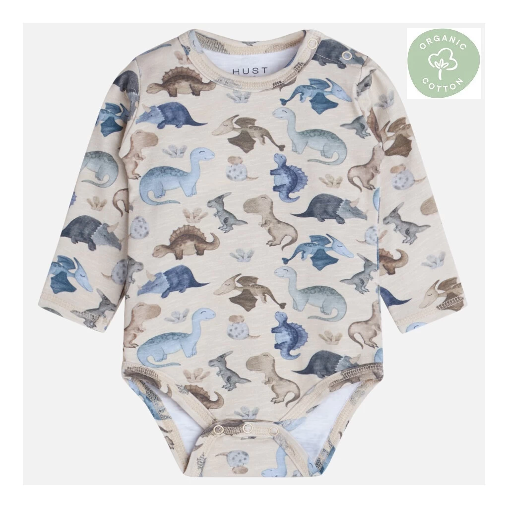 Langärmliger Body aus weicher Baumwolle mit Dinosaurier-Print. Druckknöpfe an der linken Schulter und zwischen den Beinen. Dieses Produkt ist GOTS (Global Organic Textile Standard) zertifiziert.