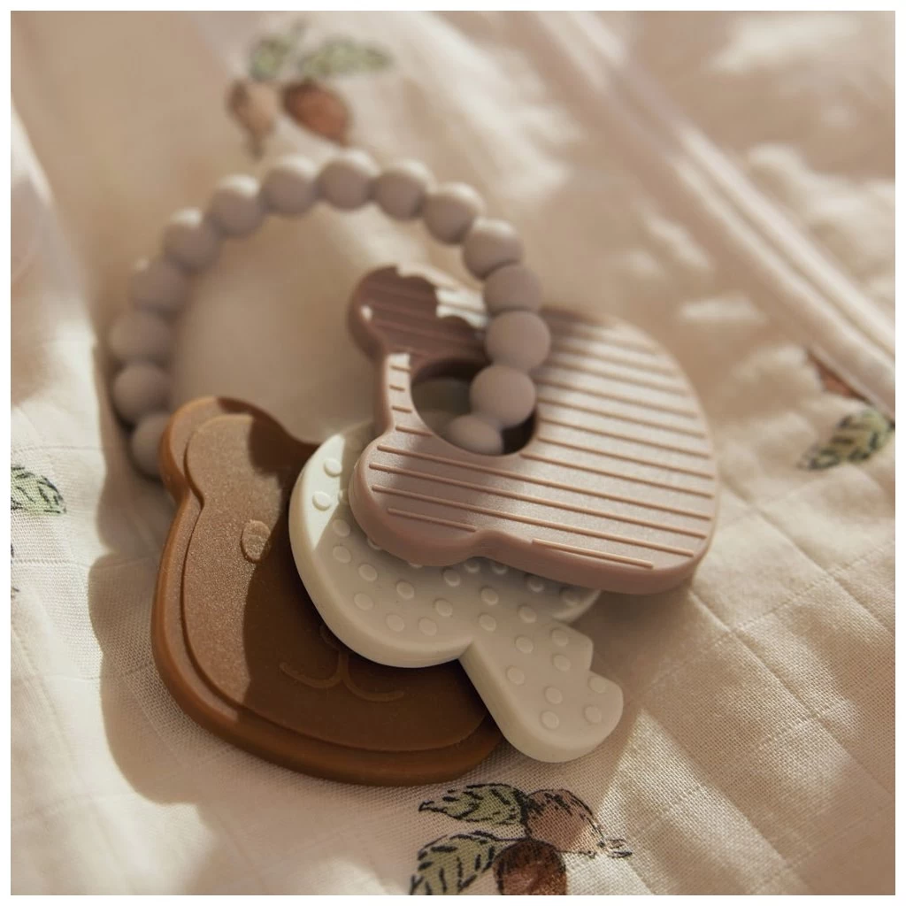 Die schönen Silikonartikel eignen sich sehr gut als Spielzeug, sind aber auch sehr nützlich, wenn die Zähne durchkommen. Ein Zwei-in-Eins-Spielzeug! Alle Silikonprodukte sind aus 100 % Silikon und BPA- und PVC-frei, also besonders sicher für dein Baby! Auch sehr schön als Babygeschenk.