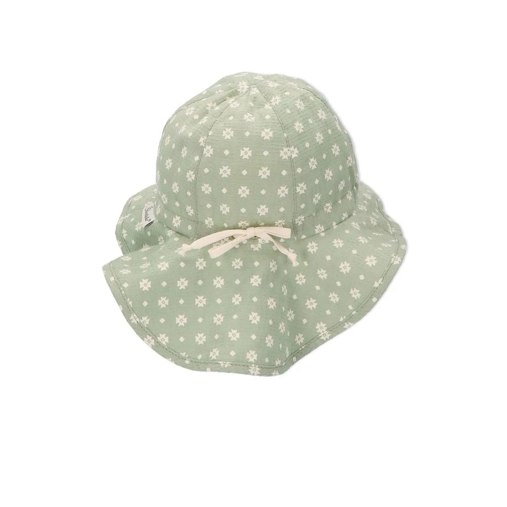 Kinder-Schirmmütze mit Nackenschutz und grünen Blümchen von Sterntaler