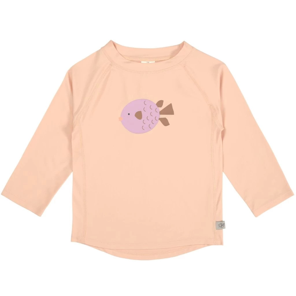 Das rosa, langärmelige Kinder UV Shirt mit UV-Schutz 60 kommt mit dem verspielten Print Fisch und extra weichem Stoff. Das atmungsaktive und schnelltrocknende Material sorgt für eine angenehme Passform und Badespaß.
