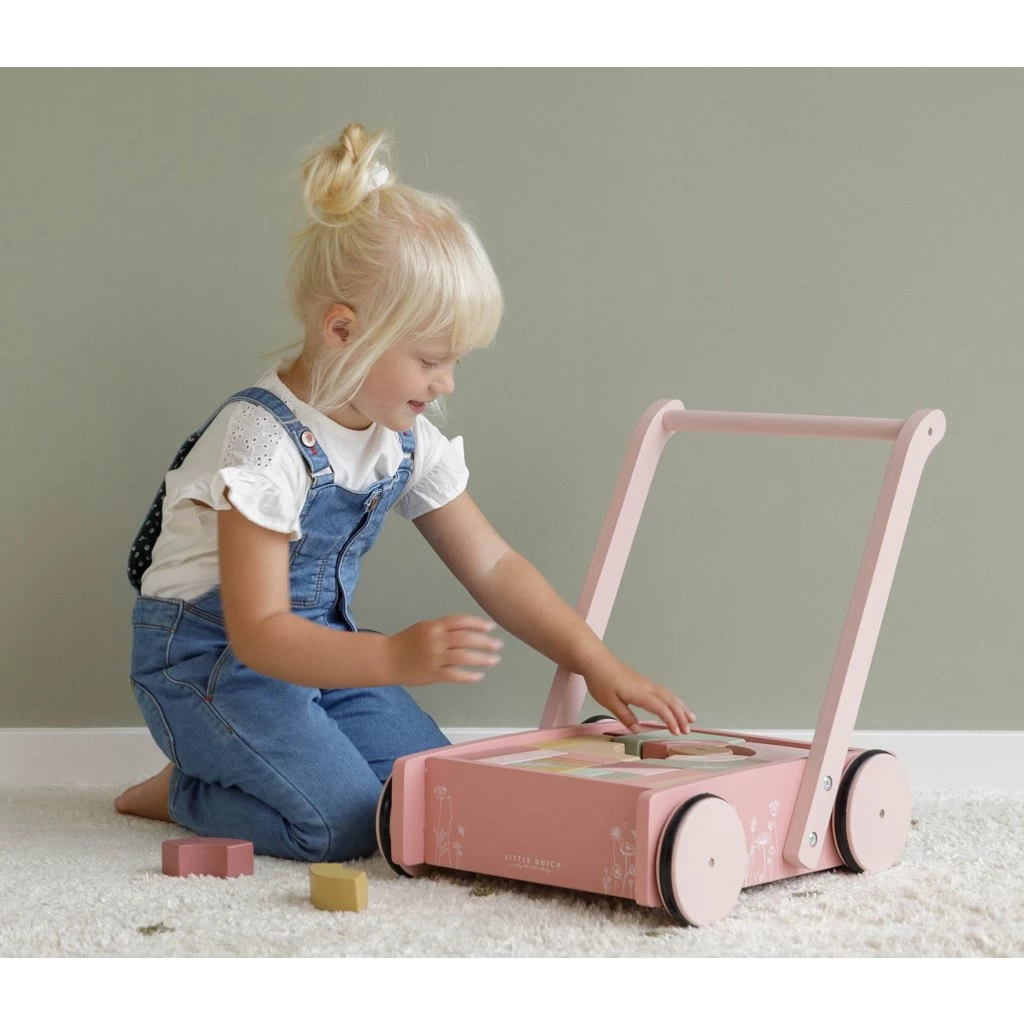 Super schöner Lauflernwagen mit Bauklötzen in der Farbe Pink von der stylischen Firma Little Dutch.