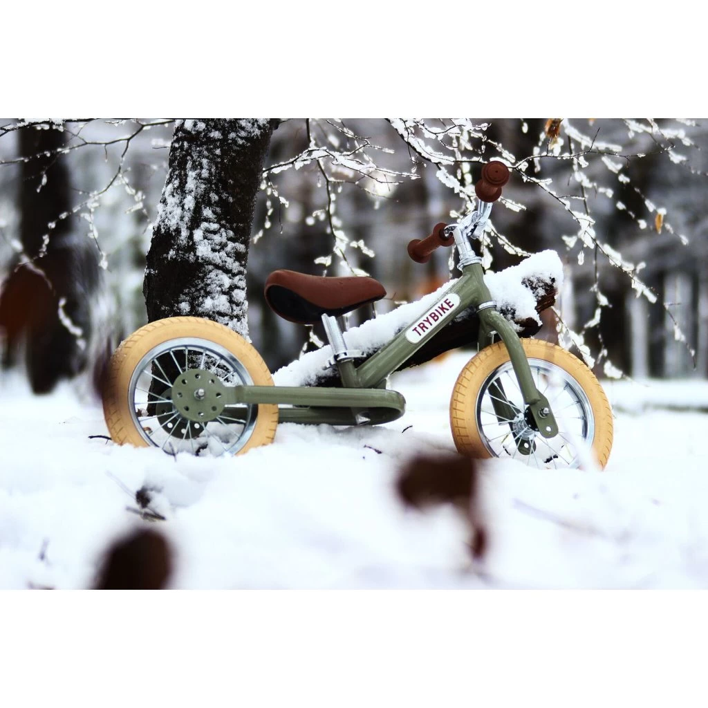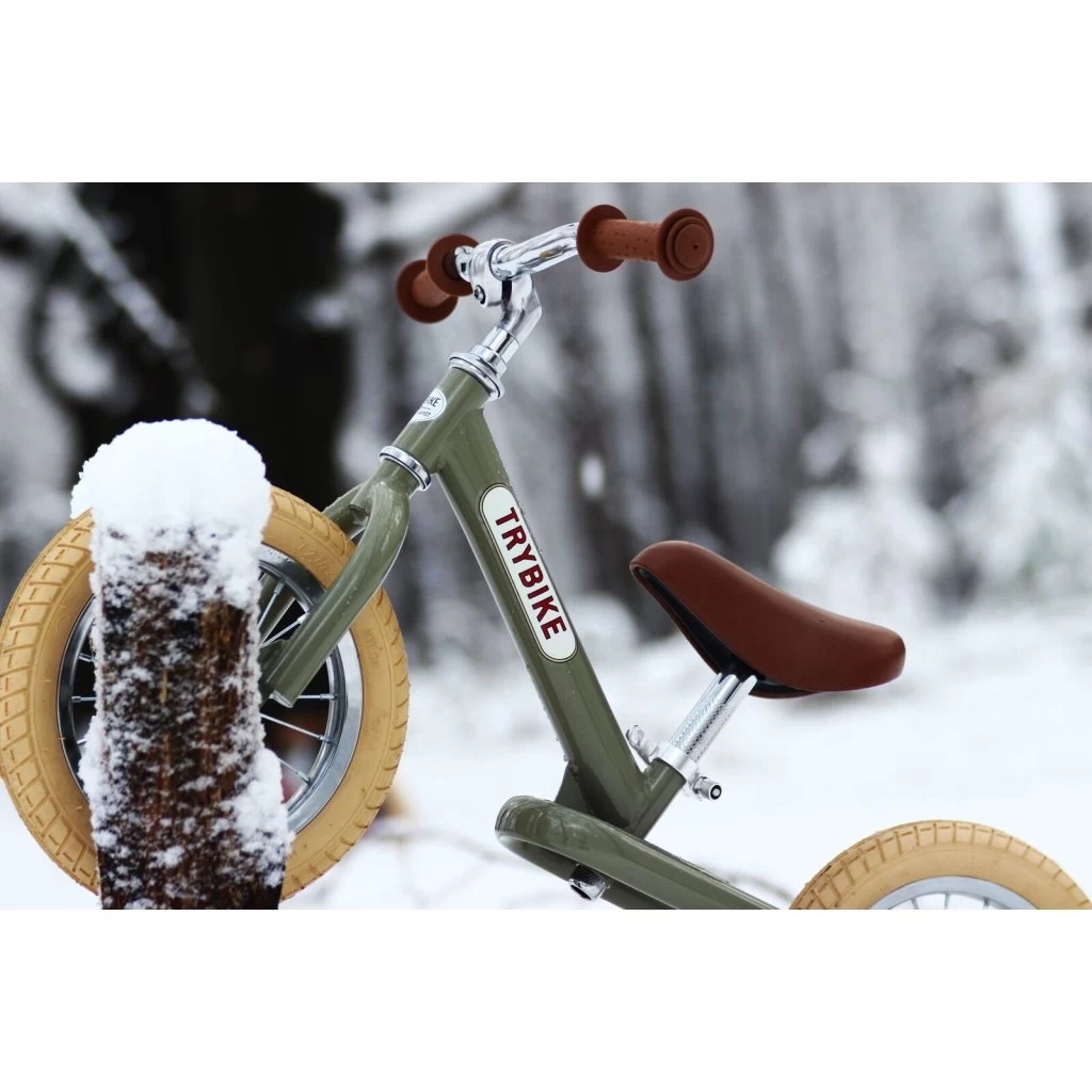 Das fetzige Vintage – Laufrad TRYBIKE von der Firma kleine Flitzer in der Farbe Grün ist der absolute Hingucker wenn Sie mit Ihrem kleinen Liebling unterwegs sind. Dank der Lufträder kann man das Laufrad welches Ihr Kind bereits ab 2 Jahren nutzen kann, in jedem Gelände fahren. Falls Sie das Laufrad mit Metallrahmen als Dreirad verwenden möchten haben Sie die Möglichkeit ein drittes Rad gegen Aufpreis mitliefern zu lassen. Mit dem Trike-Kit kann das Laufrad schon ab 18 Monaten verwendet werden. Dieses Rad ist clever durchdacht. Der Sattel ist höhenverstellbar, die Sitzhöhe beträgt 30-45 cm. Das Laufrad entspricht selbstverständlich den Sicherheitsanforderungen: EN 71 und CE. Wir wünschen Ihnen viel Freude an der frischen Luft