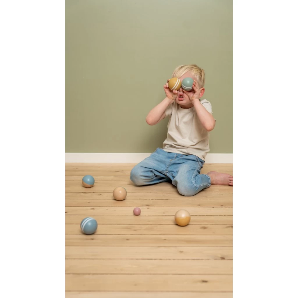 Versuche mit Deinen würfen so nah wie möglich an den kleinen Ball namens Jack heranzukommen, um zu punkten. Finde einen Platz im Freien und lade Deine Familie und Freunde zu einer Partie Boule ein. Wählt eure Farben und lasst die Kugeln rollen. Ein Bocciaspiel macht Spaß und fördert die Hand-Augen-Koordination. Dieses Set aus Holzkugeln besteht aus 6 großen Kugeln, 2 kleinen Kugeln (Buben) und einem Leinensack zur Aufbewahrung. Lasse Dein Spielgerät nach dem Spielen nicht draußen oder im Regen stehen, sondern lagere die Kugeln im Leinensack an einem trockenen Ort.