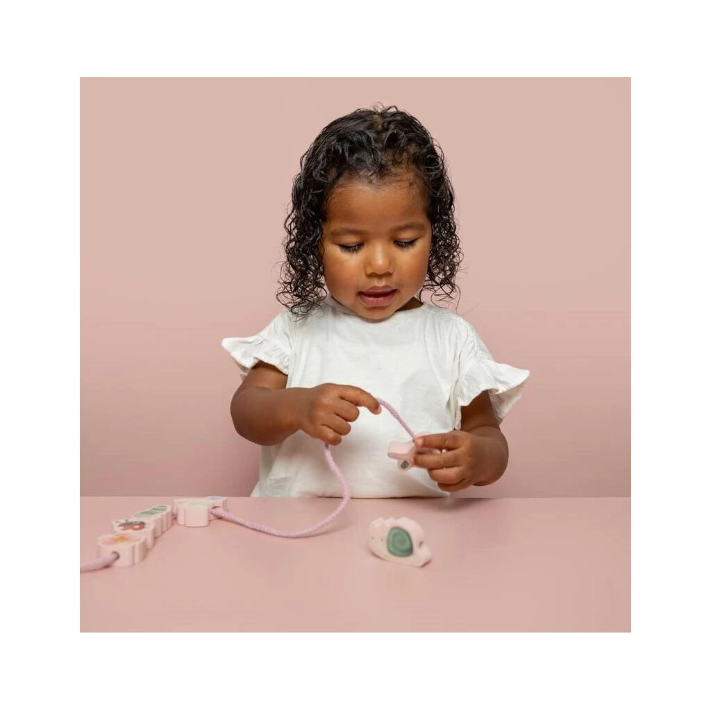 Fädel die Perlen auf, und mache eine schöne Kette aus Blumen und Schmetterlingen! Welche Geschichte wirst du mit deiner Kreation erzählen? Was hat der kleine Vogel Abby vor? Kannst du ihm helfen, Blumen für sein Nest zu finden? Und wird er unterwegs seine Freunde treffen? Oder fädelst du zuerst Lilly den Schmetterling auf die Schnur? Lass deiner Fantasie freien Lauf und erzähle eine bezaubernde Geschichte, indem du aus diesen schönen Perlen nach und nach eine wunderschöne Kette machst. Dieses Fädelperlenset besteht aus einer Schnur und 12 Holzperlen mit den wunderschönen Illustrationen aus der Flowers & Butterflies-Kollektion. Kleinkinder werden es lieben, die Perlen aufzufädeln und mit ihrer Fantasie die lebhaftesten Geschichten zu erzählen. Das Spielen mit den Fädelperlen fördert die Feinmotorik, die Hand-/Augenkoordination und die Kreativität.