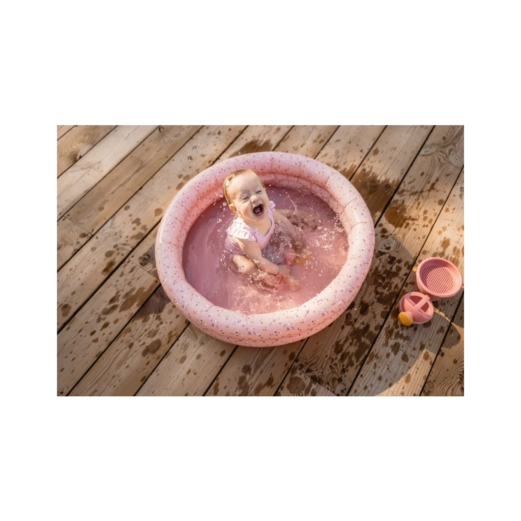 Bist du bereit für eine Menge Wasserspaß? An warmen Tagen lässt sich das Little Pink Flowers-Schwimmbecken leicht aufblasen und im Garten aufstellen. Wenn es mit Wasser befüllt wird, hat Ihr Kind ein herrliches Bad, in dem es sich abkühlen kann. Da ist viel Spaß garantiert! Das rosafarbene Schwimmbecken hat den erkennbaren Aufdruck aus der Little Pink Flowers-Kollektion auf dem Rand, und auf dem Boden ist durch das Wasser hindurch ein großer Schmetterling zu sehen. Das Schwimmbecken hat eine Größe von 80 cm.