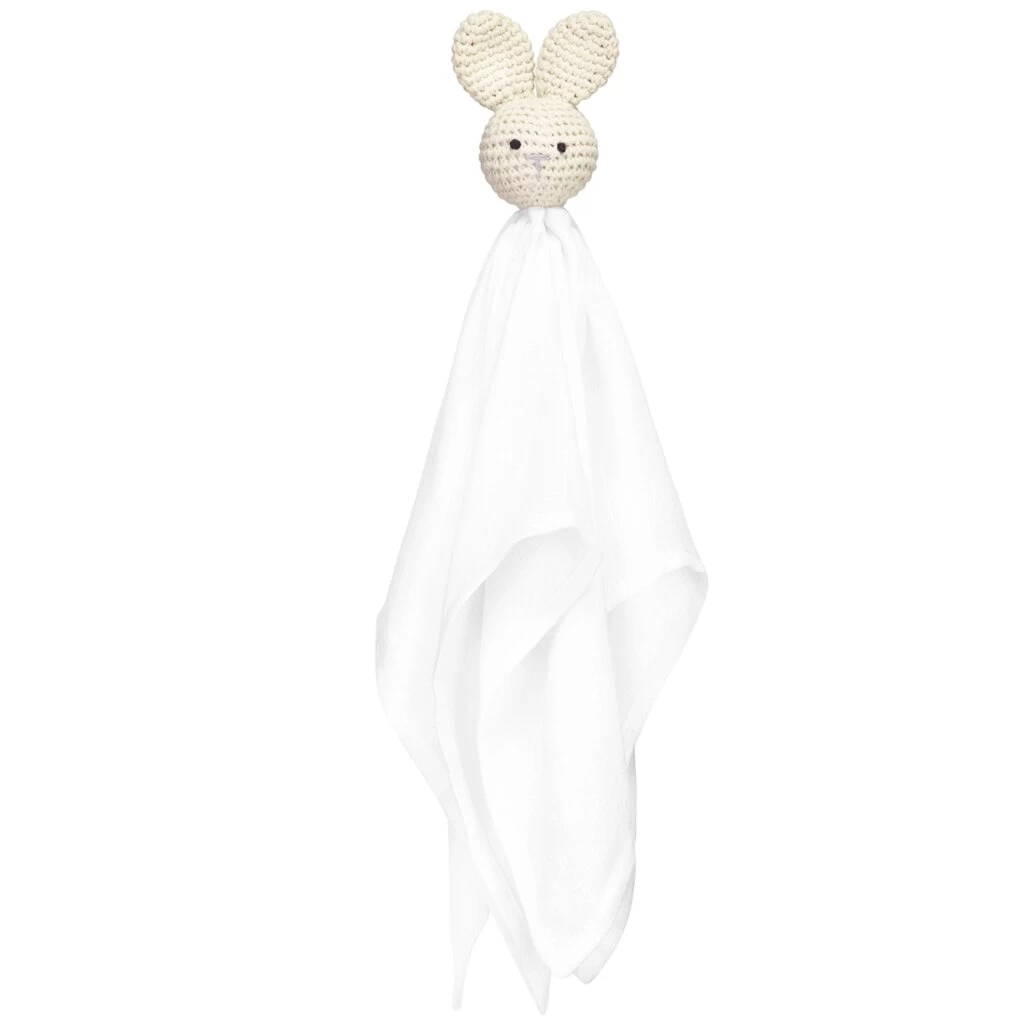 Ab ins Bettchen, dein Lieblingshase wartet.. Dieses super süße Kuscheltuch von Maylily in der Farbe Cream mit süßem Hasen wird der neue Liebling von Ihrem Schatz.