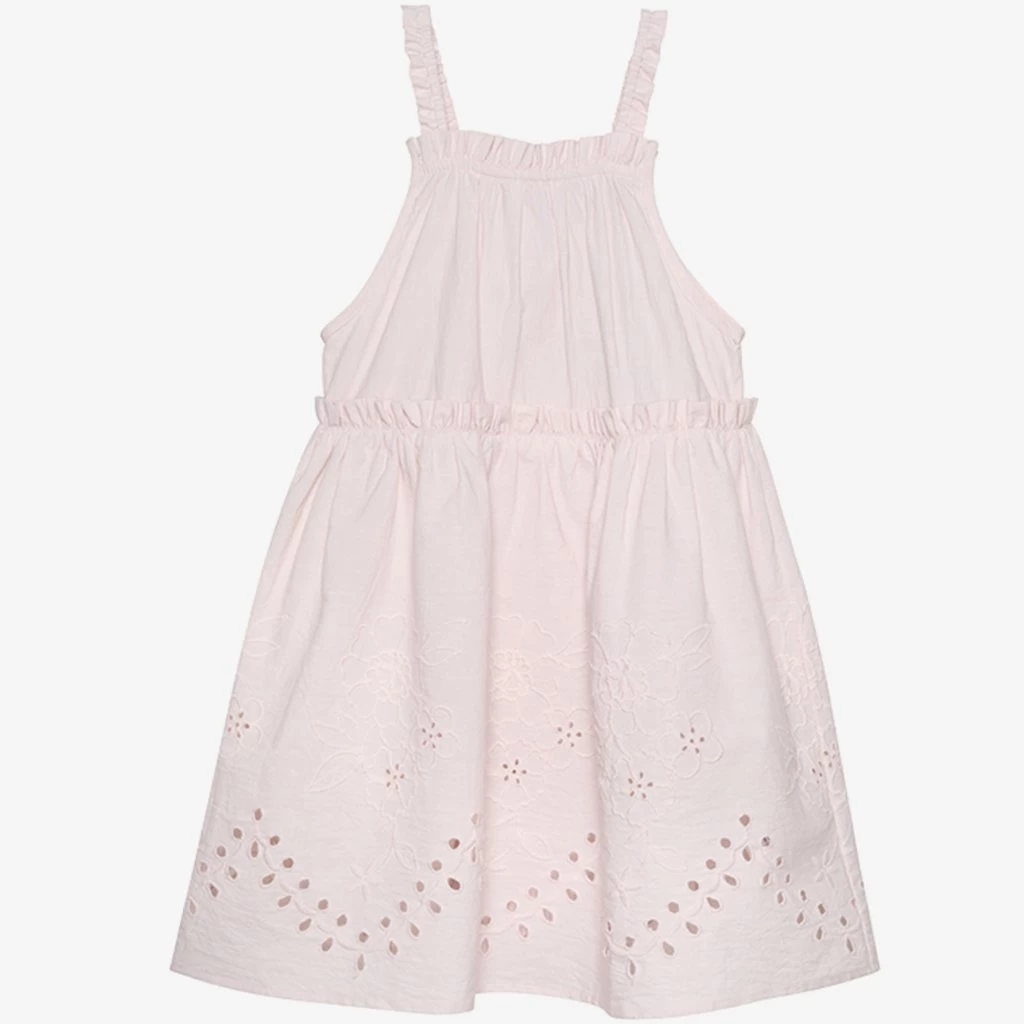 Schönes einfarbiges Kleid von Minymo. Das Kleid ist ärmellos und hat feine Details wie Rüschen und Stickanglaise an der Unterseite. Die Fasern sind zertifiziert mit TENCEL™, hergestellt von LENZING™
