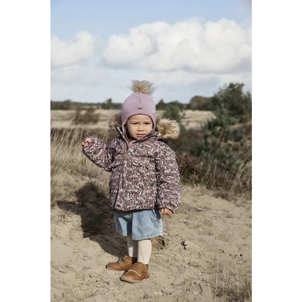 Strickmütze von MINYMO. Die Mütze hat oben einen abnehmbaren Bommel aus Kunstpelz. Die Mütze hat Windstopper und innen ein weiches Baumwollfutter. Es besteht aus gestrickter Wollqualität, die sich weich und angenehm auf der Haut anfühlt. Das Material ist 50 % Wolle und 50 % Baumwolle. Aufgenähtes MINYMO-Logo auf der Mütze.