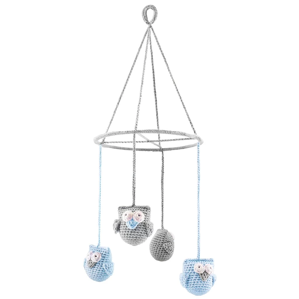 Dieses super süße, von Hand gehäkelte Mobile mit goldigen Eulen begleitet Ihren kleinen Schatz ins Land der Träume.. Sie können das schöne Mobile über dem Bett oder dem Wickeltisch anbringen.