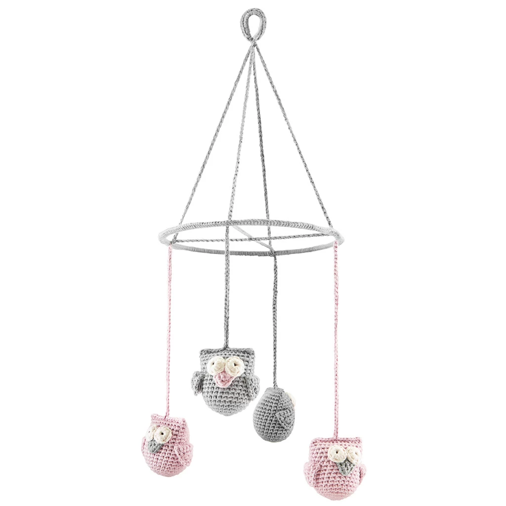 Dieses super süße, von Hand gehäkelte Mobile mit goldigen Eulen begleitet Ihren kleinen Schatz ins Land der Träume.. Sie können das schöne Mobile über dem Bett oder dem Wickeltisch anbringen.