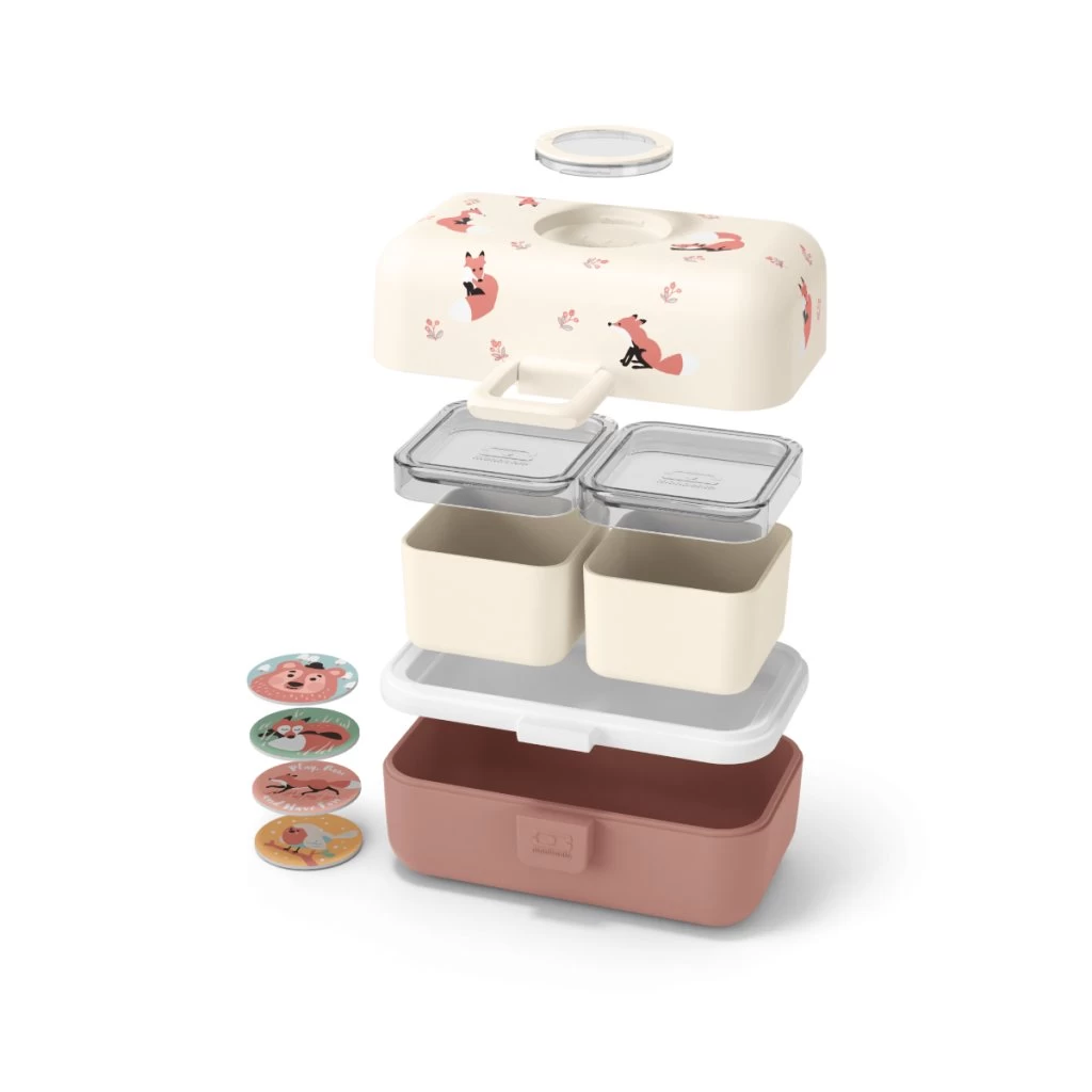 Dank der verschiedenen Fächer bewahrt die Brotdose MB Tresor zimt Fox das Mittagessen abenteuerlustiger Knirpse in Schule oder auf Reisen sicher auf. Mit ihren austauschbaren Buttons kann die Lunch-Box Kinder individuell gestaltet werden!