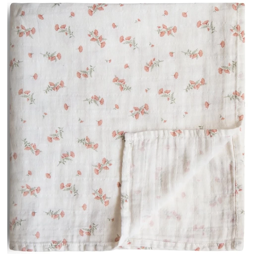 mushie Baby-Wickeldecke aus Bio-Baumwoll-Musselin pink flowers