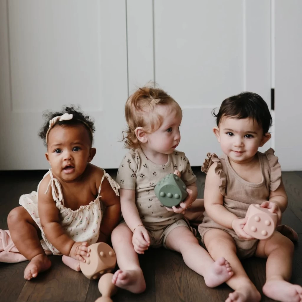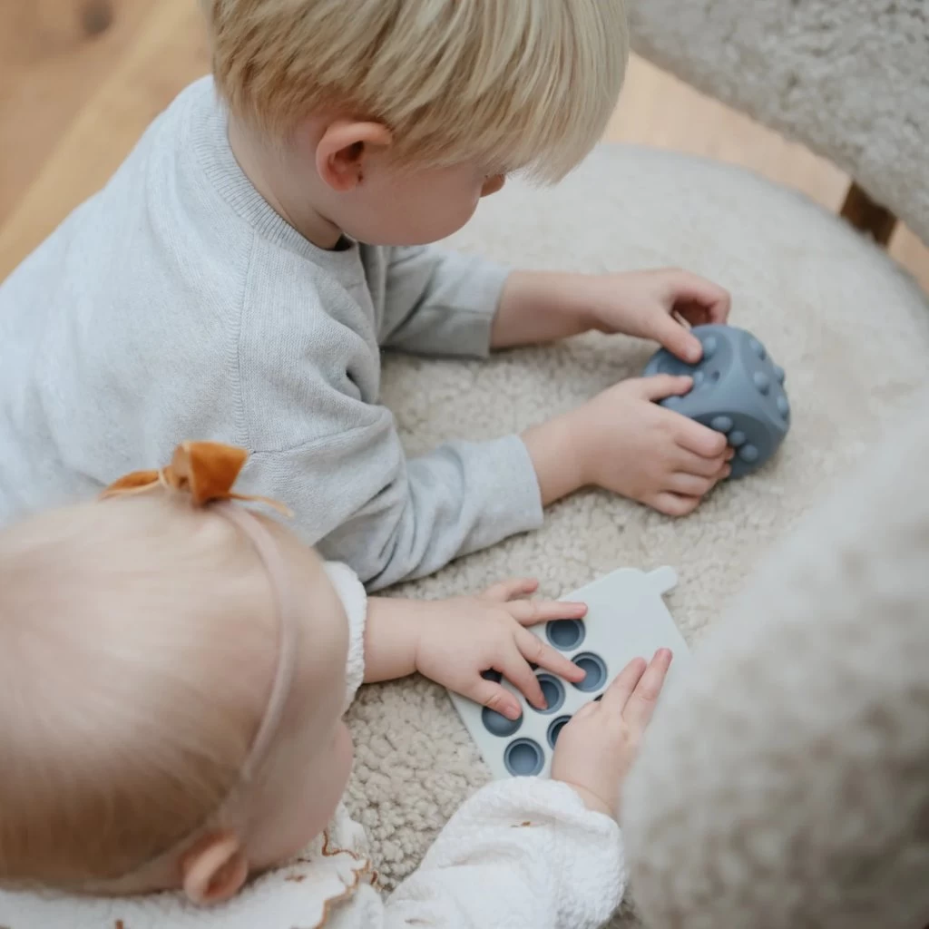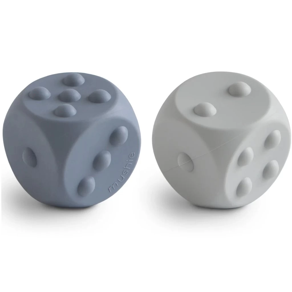 Kombinieren Sie Lernen und Spielen mit dem mushie Dice Press Toy. Das Würfelpaar besteht zu 100 % aus lebensmittelechtem Silikon und weist auf jeder Seite knallbare Punkte auf, die die Entwicklung der Feinmotorik fördern und gleichzeitig ein Hilfsmittel zum Erlernen des Zählens und einfachen Rechnens darstellen. Dieses Zweierset ist ein sensorisches Spielzeug und ein MINT-Spielzeug in einem und wurde entwickelt, um kleine Hände und Gedanken zu beschäftigen.