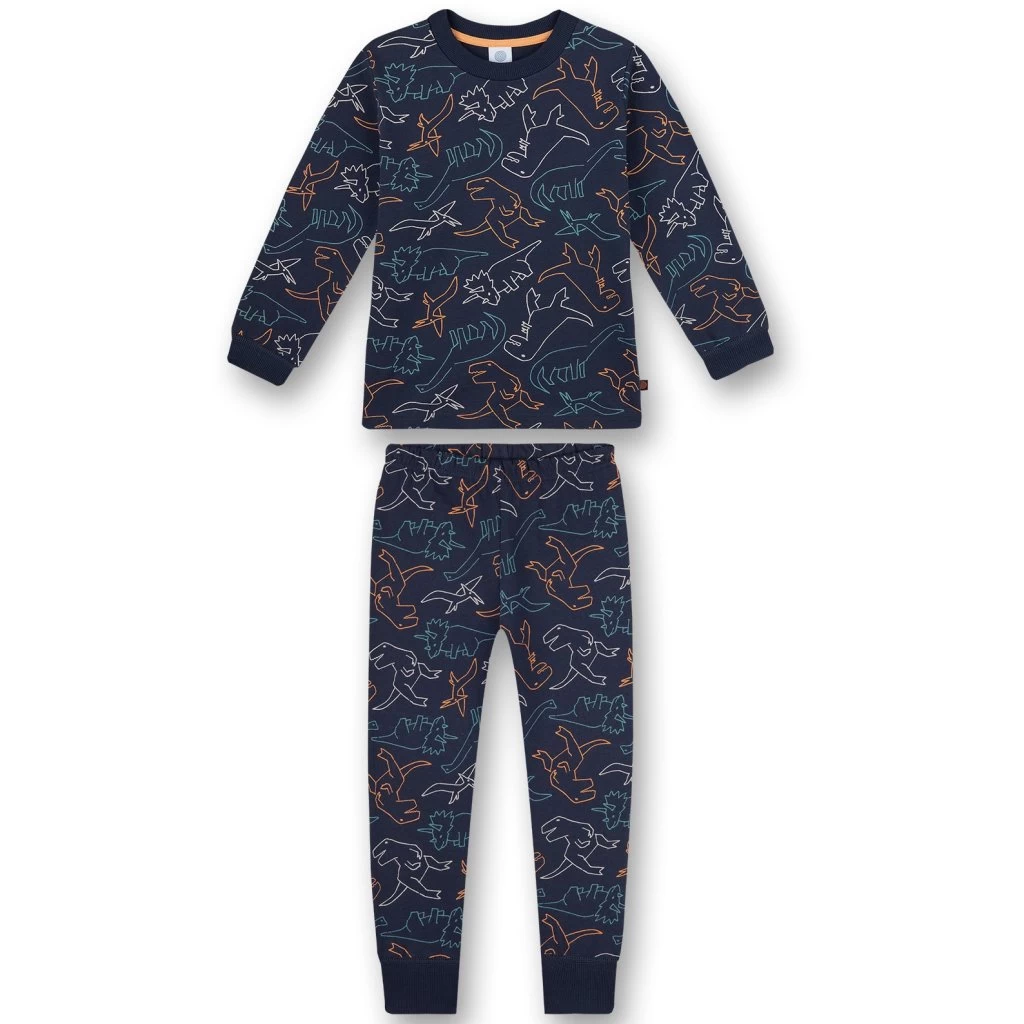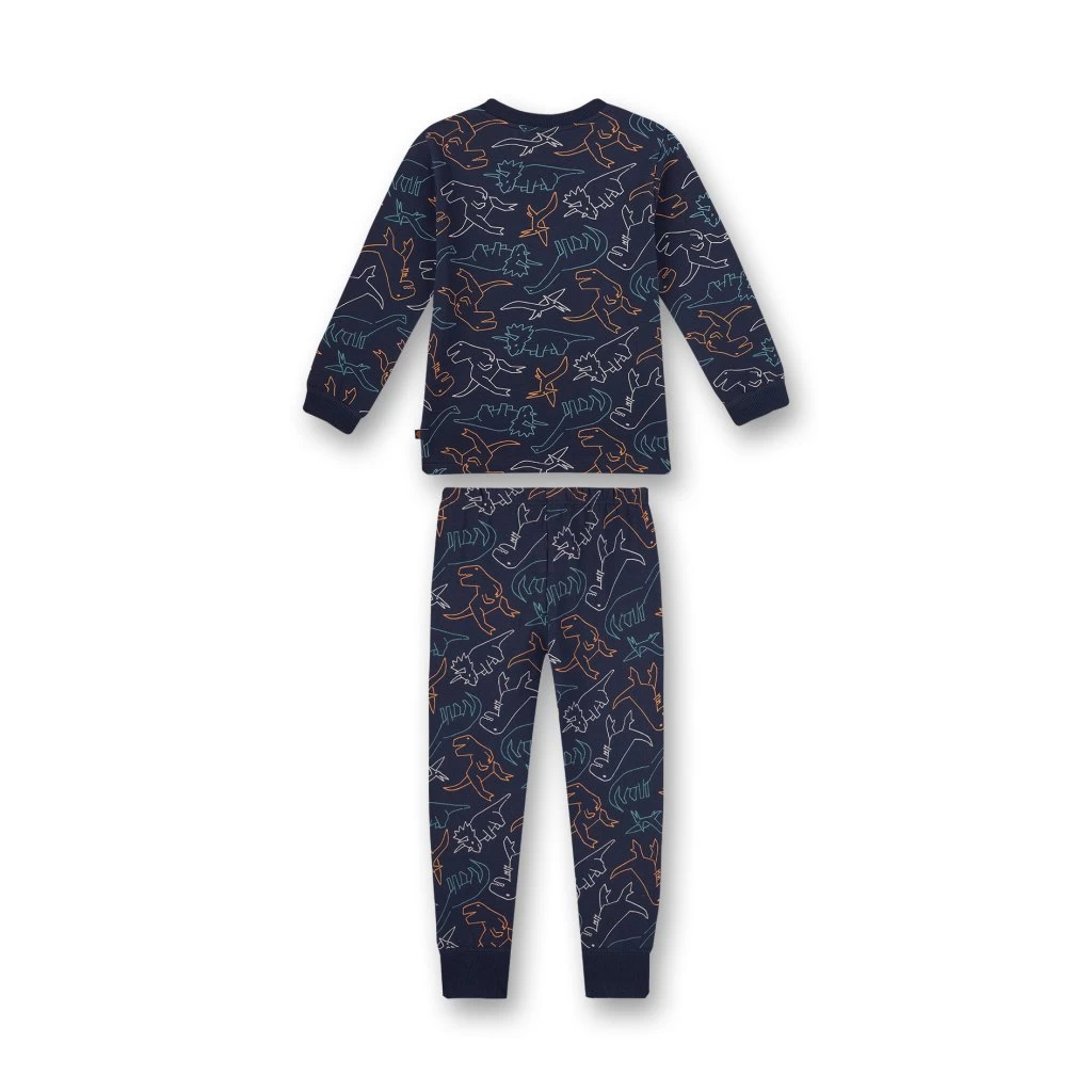 Süßer Bio-Baumwoll-Schlafanzug in der Farbe Blau mit coolen Dinos von der Firma Sanetta.
