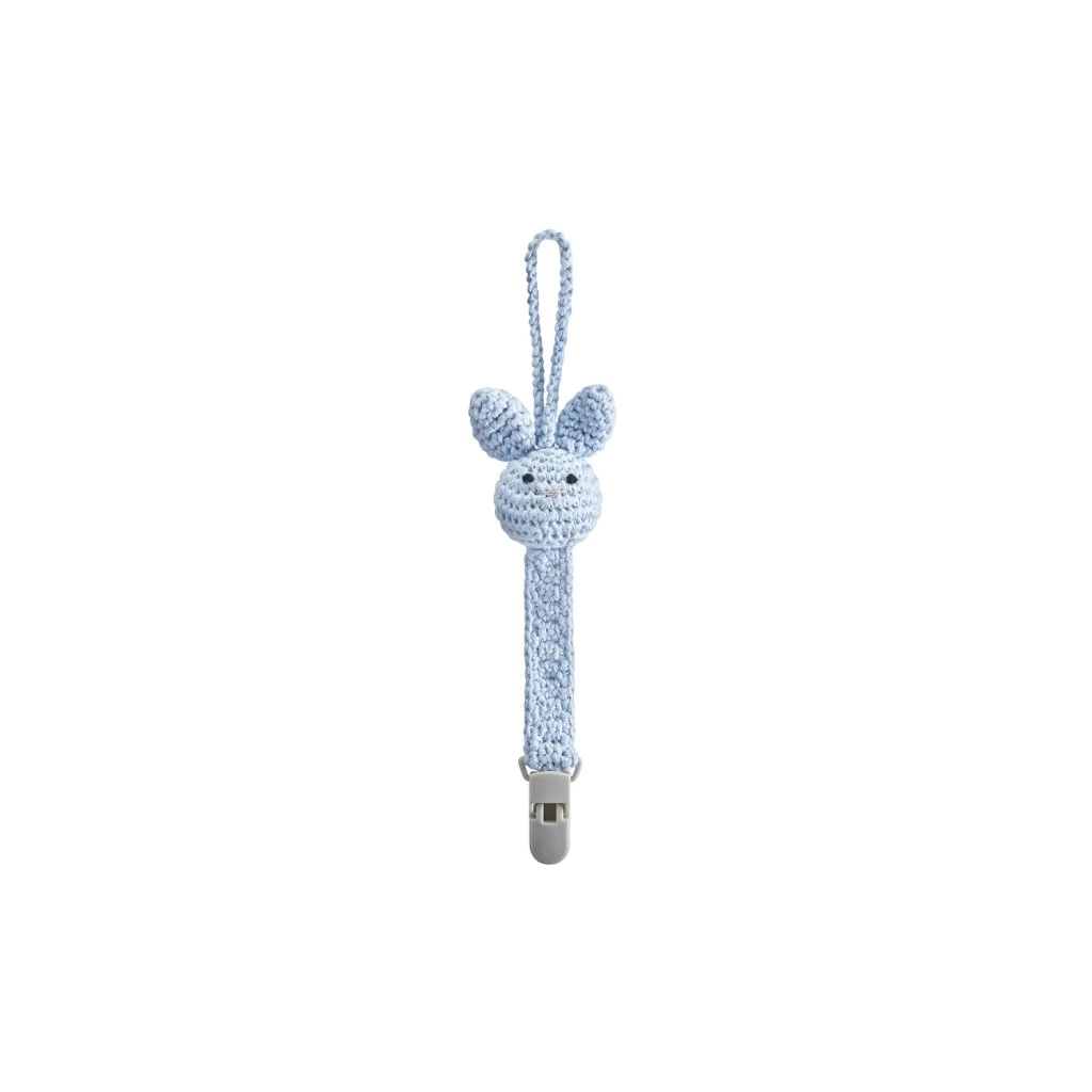 Diese wunderhübsche von Hand gehäkelte Schnullerkette Hase in der Farbe blau von der Firma Maylily ist der absolute Hingucker. Der Hase wurde aus Bio-Baumwolle gehäkelt und hat einen tollen Clip, welcher sehr gut zu befestigen geht.