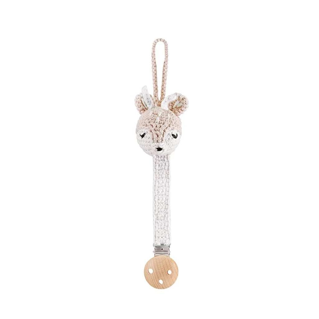 Diese wunderhübsche von Hand gehäkelte Schnullerkette Reh in der Farbe Beige von der Firma Maylily ist der absolute Hingucker. Der Reh wurde aus Bio-Baumwolle gehäkelt und hat einen tollen Clip, welcher sehr gut zu befestigen geht.