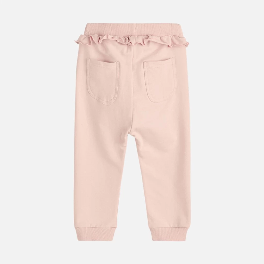 Tanne – Jogging trousers in der Farbe Peach skin und der Größe 98 von Hust and Claire Material: 97% Cotton 3% Elastane Hose in weichem Sweatstoff mit Rüsche in der Taille und Taschen vorne und hinten. Dieses Modell verfügt über einen Elastikbund und ein Schnürband in der Taille. Mit verstellbarer Taille. Dieses Produkt ist GOTS (Global Organic Textile Standard) zertifiziert.